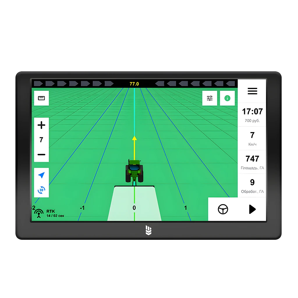 Отличный способ повысить эффективность и сократить расходы в сельском хозяйстве — это Agronavigator Campus. Он оснащен усиленной антенной, которая обеспечивает устойчивый сигнал. Система параллельного вождения используется для решения таких задач, как обработка пахотных земель, посадка зерновых, масличных и других культур.